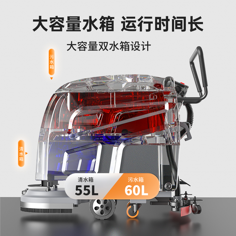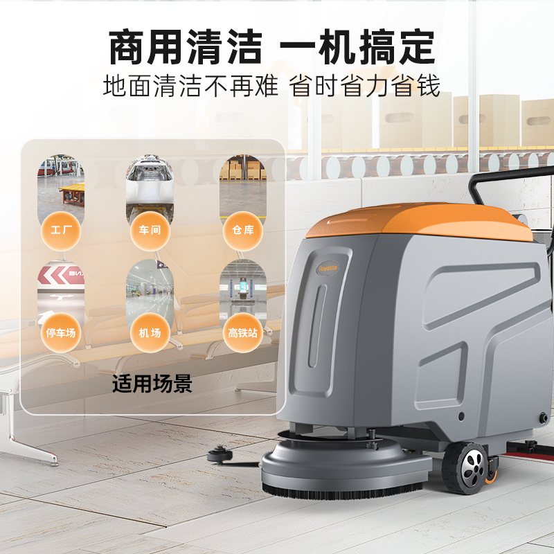 荣事达洗地机手推式RS-M40,强效电机过载保护性能峰值稳定,加大水箱长效清洁,提升了清扫宽度,清洗效率更高,可以实现68分贝静音作业,设备配备了浮球感应装置,可以起到保护电机的作用,当污水达到一定程度时,可以自动停止工作,防止污水进入电机。...