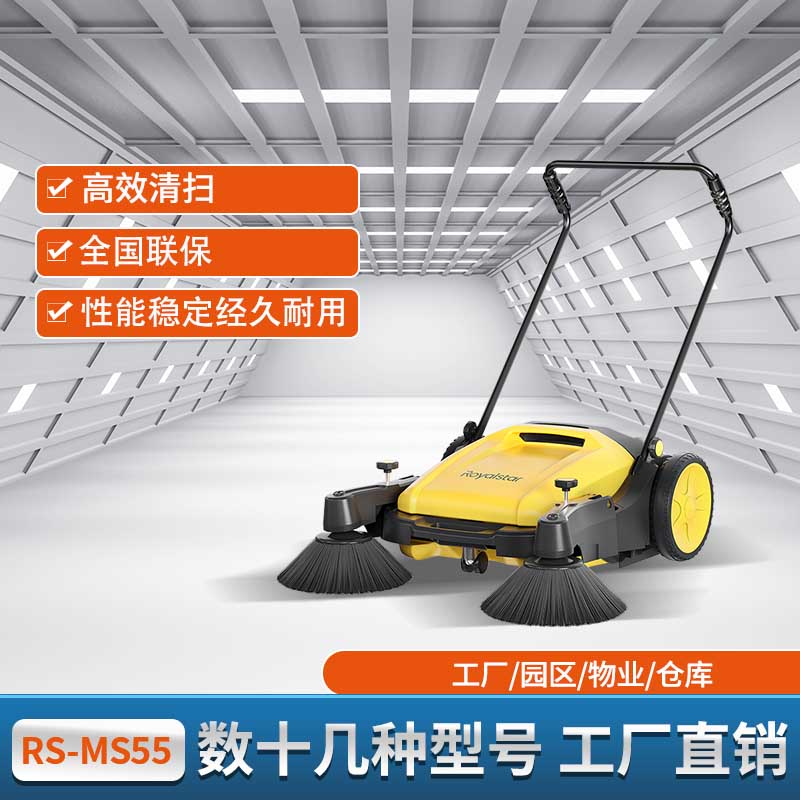 荣事达无动力手推式扫地机RS-MS55,结构相对简单,操作方便快捷, 整机不需要任何电动助力,不用油、不用电,只需步行推动就能把垃圾轻松回收到垃圾箱。...